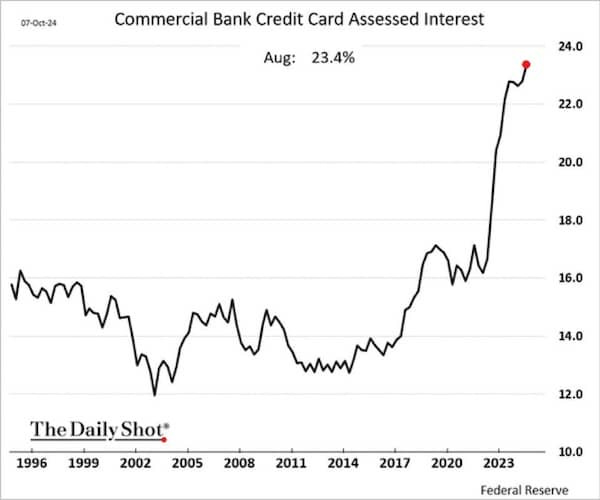 🗞️ El tipo de interés de las tarjeta de crédito en Estados Unidos alcanza un nuevo máximo histórico en el 23,4%