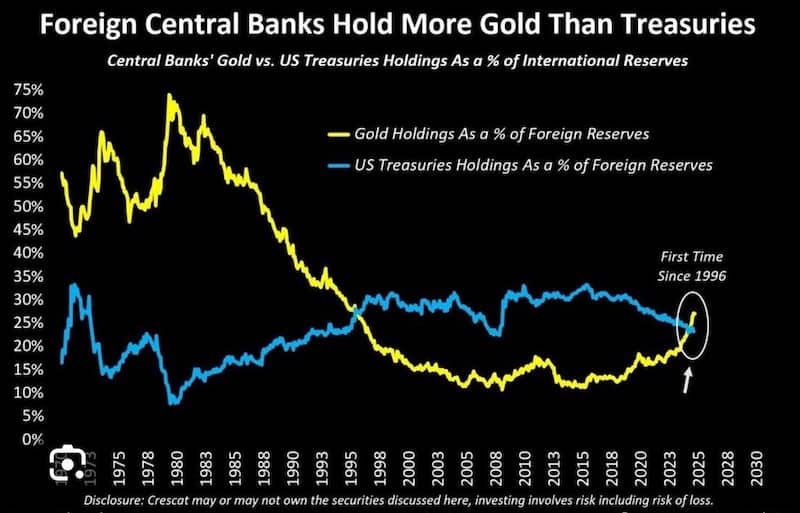 Por último comentar también que las reservas de oro de los bancos centrales superan a la de bonos del Tesoro estadounidense por primera vez en 30 años 👇
