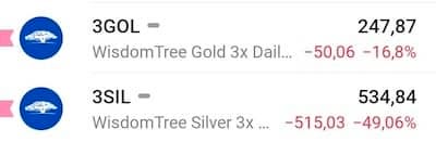 El pasado viernes, un ETF apalancado x3 sobre la plata (muy popular en Twitter) llegó a caer cerca de un -50% en un solo día, y el x3 sobre el oro rondó el -20%. 👇