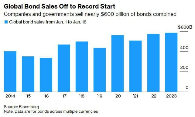 Prueba de ello es que en los primeros 18 días del año se ha registrado la mayor cifra de la historia de emisiones de deuda global.